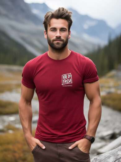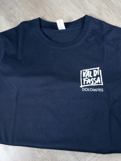 Patch in tessuto con logo Val di Fassa su sfondo bianco o nero.